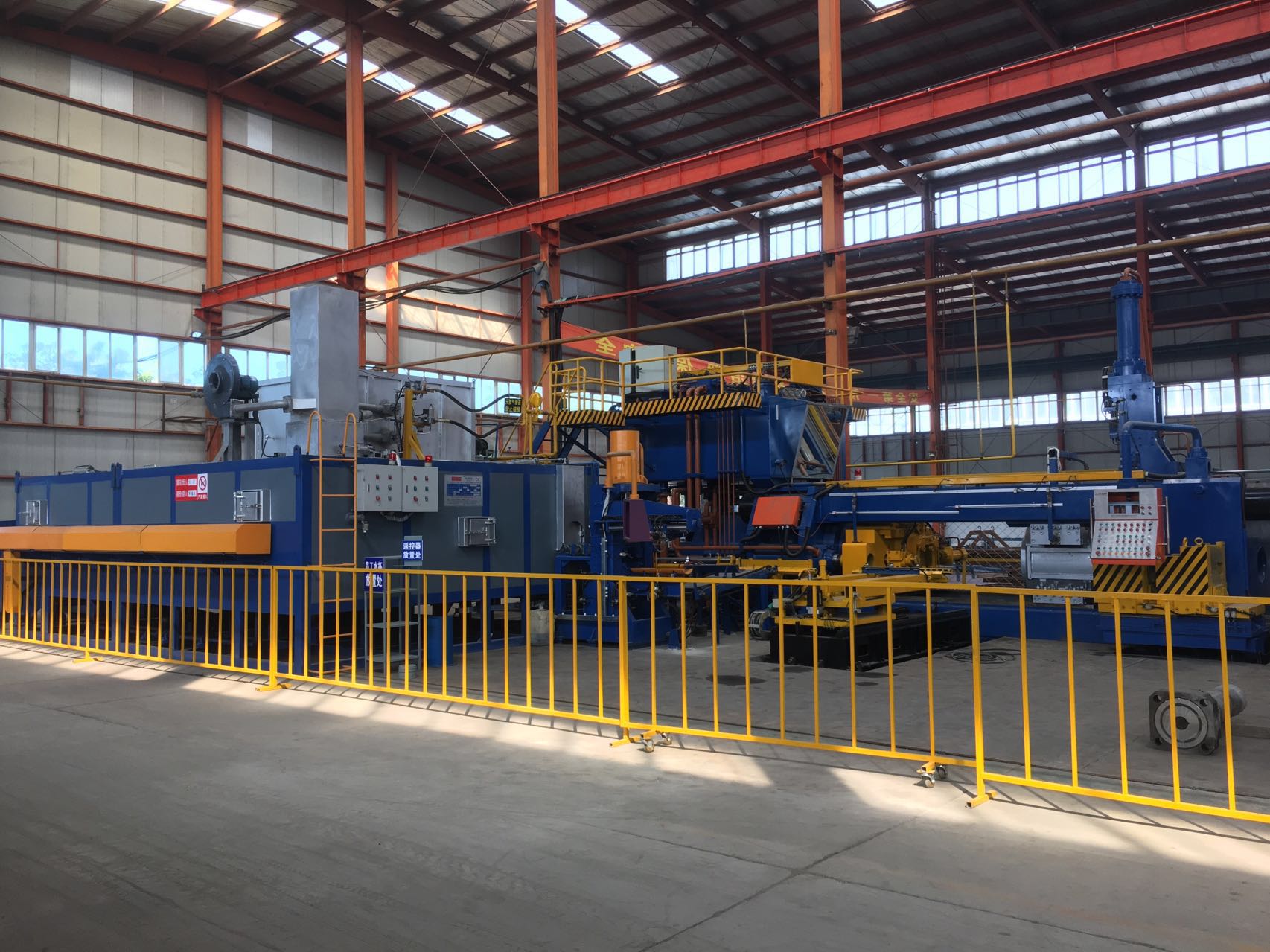 實現(xiàn)機器人切棒、上棒、雙牽引擠壓,是東北一出二、一出四技術,是國內(nèi)外先進的全自動擠壓樣板生產(chǎn)線。