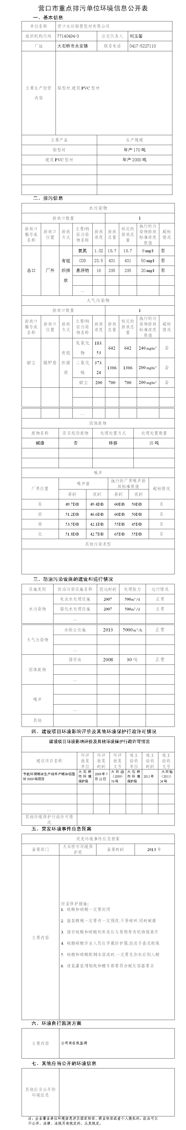 營口市重點排污單位環(huán)境信息公開表